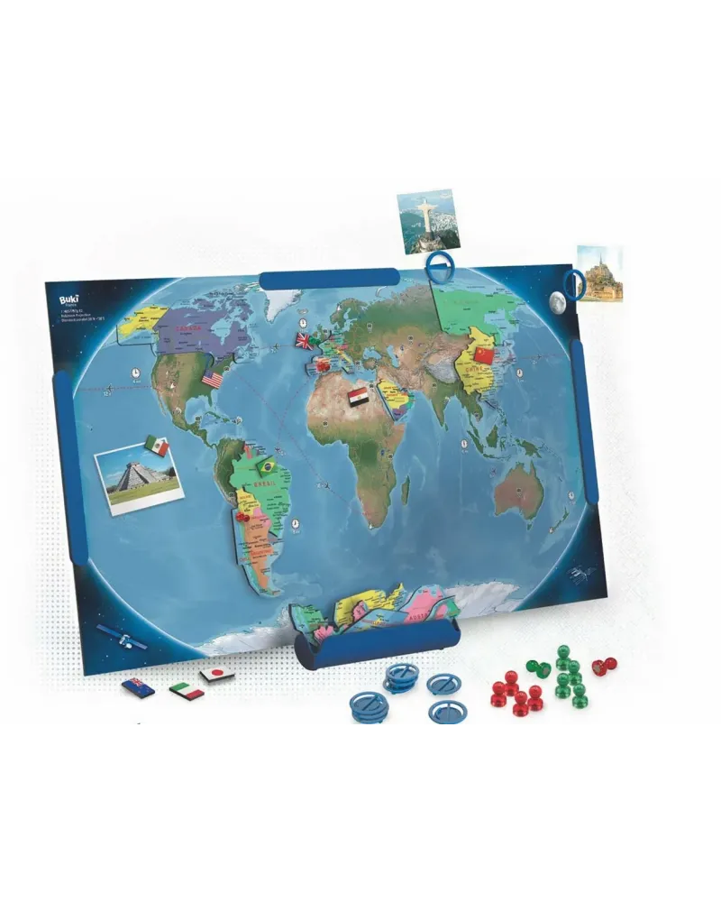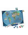 A accrocher au mur ou à déposer sur le chevalet inclus. 110 pièces représentant les pays, villes, chaînes de montagne, fleuves, drapeaux, etc.70 x 38 cm.