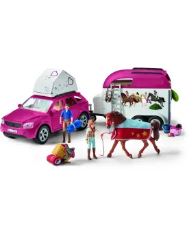 Un SUV, un van et une tente pour passer la nuit avant le grand concours. 2 figurines, 1 cheval et des accessoires inclus.
