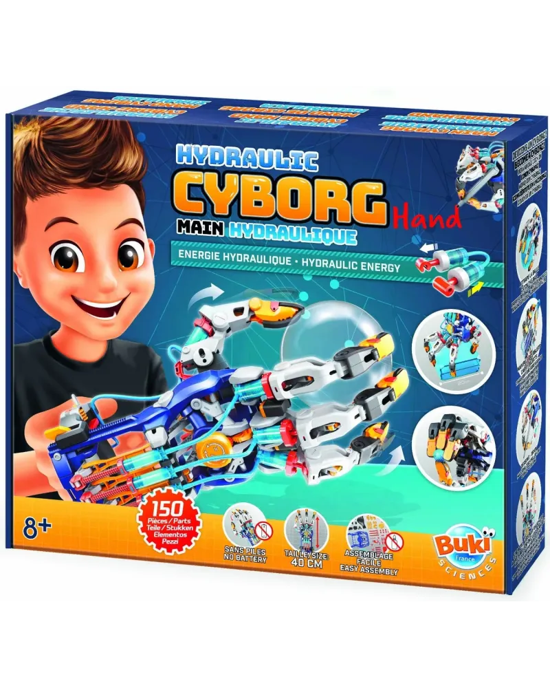 150 pièces. Construis une main cyborg articulée. Ajoute de l’eau dans le système et pilote-la du bout des doigts.