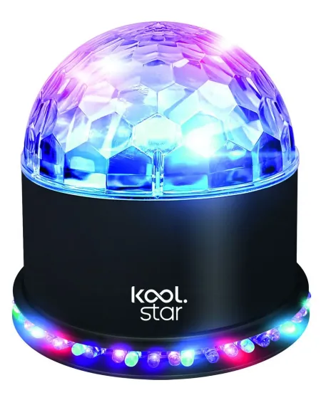 Jeux de lumières au rythme de la musique. Boule lumineuse avec 48 LEDs sur la base et 3 dans le dôme.