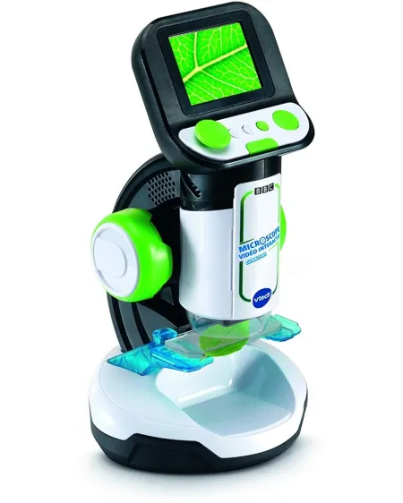Ecran LCD couleur de 2,4’’, joystick directionnel, zoom x 200, zone d'observation pour objets 3D, lames illustrées et lames à personnaliser incluses.