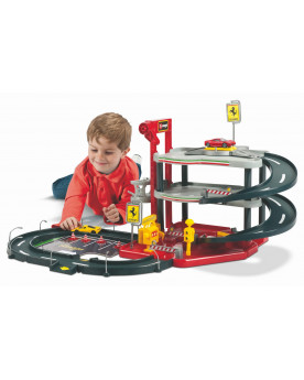 3 niveaux et 1 piste. Ascenseur, station service. 2 Ferrari 1/43ème et des accessoires inclus.